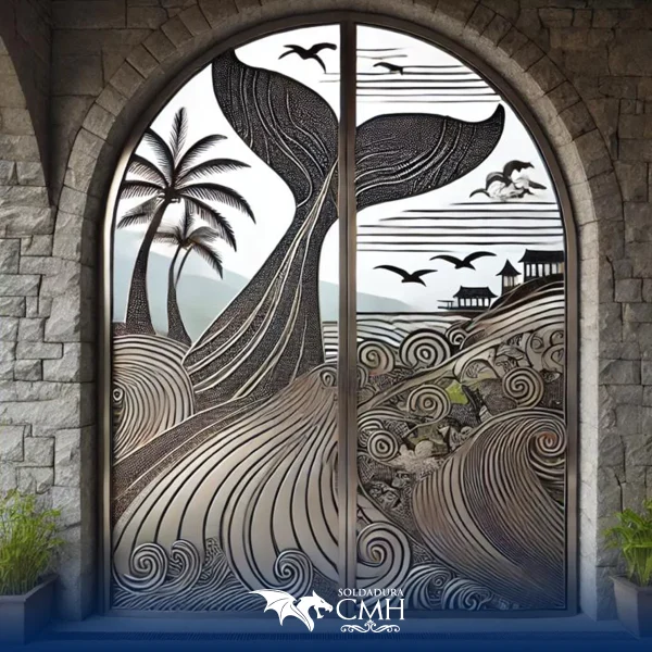 El hierro forjado, conocido por su versatilidad y durabilidad, se convierte en el lienzo perfecto para reflejar elementos del mar, la montaña y la vegetación.